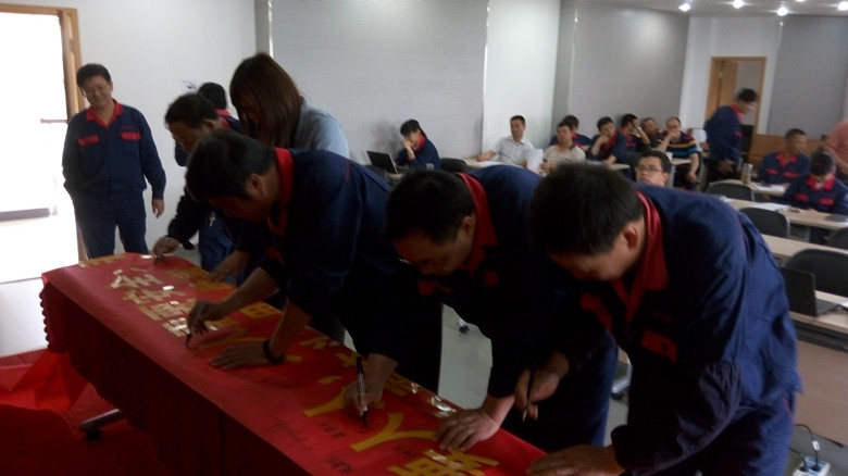 隨后,安環部經理周建東宣讀了2016年度安全倡議書,號召大家“從零開始,向零奮斗!安全零容忍!”。“我是企業的主人,我是安全的主宰;安全需要人人,人人需要安全;我要安全,我會安全,我能安全,我愛安全;從零開始,向零奮斗;用心做事,追求卓越”,伴隨著莊嚴的宣讀,與會代表在安全條幅上簽名表決心。
