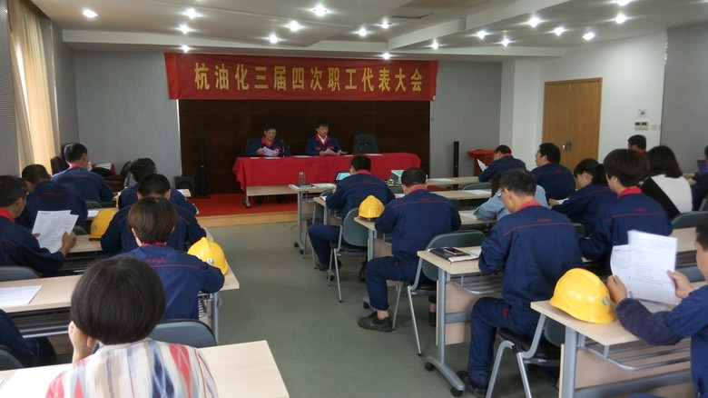 與會代表審議通過了王曉輝總經理的行政工作報告與安全倡議書;表決通過了杭油化十條員工基本守則。